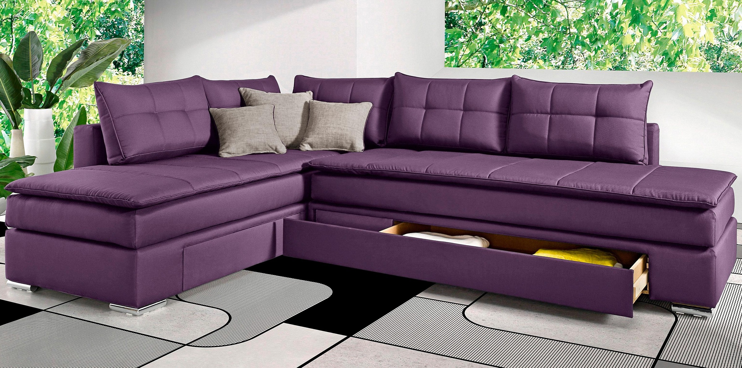 Inosign ecksofa mit dauer schlaffunktion 50. Sie besitzt einen bezug aus einem robusten luxus microfaser 83 000 scheuertouren und ist mit drei großen kuscheligen rückenkissen und vier weiteren kleineren kissen ausgestattet. Haus und dekorationen polsterecke mit schlaffunktion.
