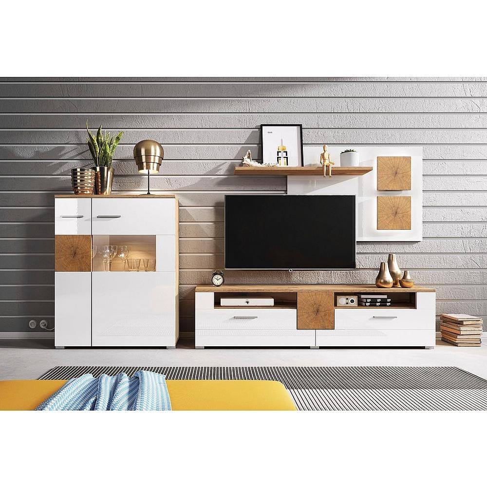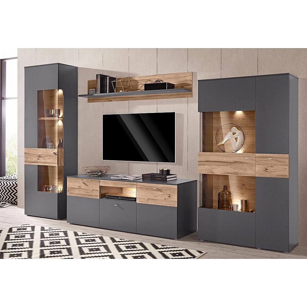 Die wohnwand von forte besticht auf den ersten blick durch sein außergewöhnliches design. Wohnwand set 4 tlg für 269 99. Neben stellflächen für ihr fernsehgerät und weitere elektronikartikel bietet eine wohnwand ausreichend stauraum für gegenstände des täglichen gebrauchs bücher und dekorationsartikel.