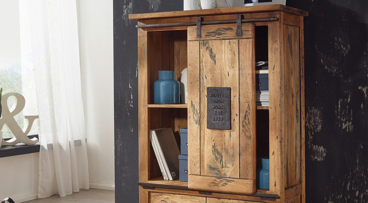 Geschirr und tischdeko kommen in stylischen highboards oder in einer kommode industrial unter.